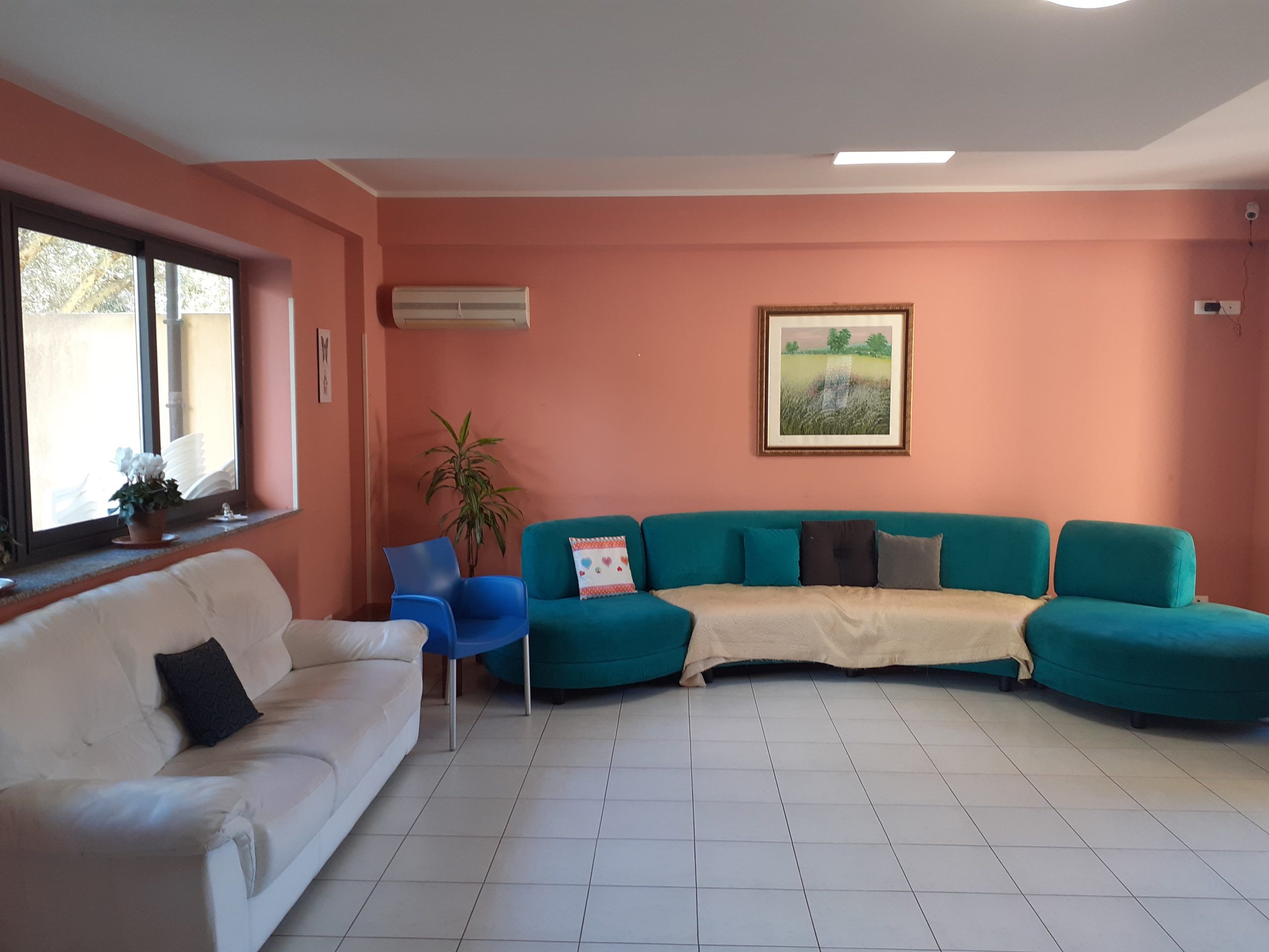 Grazie alle numerose finestre, l’ambiente è molto luminoso e perfetto anche per laboratori creativi, piccoli concerti e momenti di socialità.